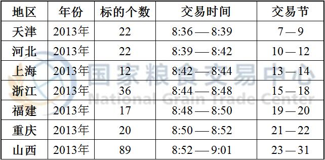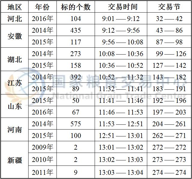 国家临时存储真菌毒素超标小麦、国家临时存储进口小麦以及最低收购价和国家临时存储小麦于8:30开市交易,分品种、分地区预估竞价交易时间如下: