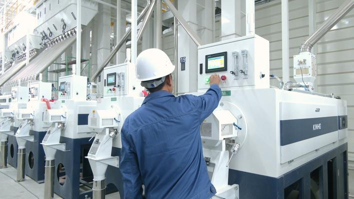 整条生产线采用5g 物联网技术,串联起从原料入仓到去石、砻谷、筛分、碾米、抛光、色选等35道工序,实现全程自动化。昔日需要10余人值守的车间如今仅需两名员工。